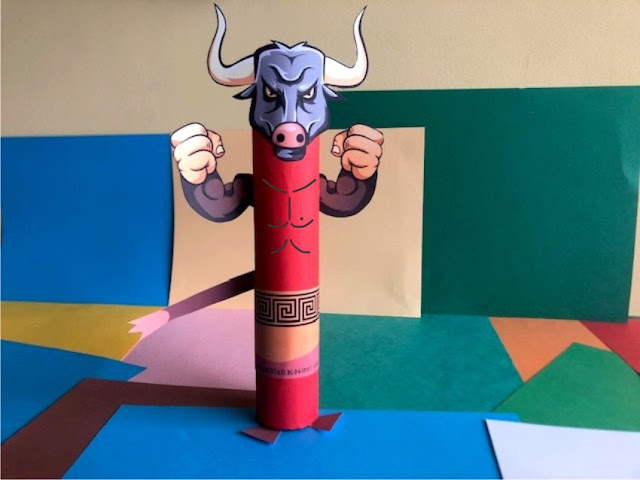 Επίσης αν δεν έχουμε εκτυπωτή, μπορούμε να σχεδιάσουμε και να χρωματίσουμε μόνοι μας όλα τα μέρη του σώματος του Μινώταυρου.